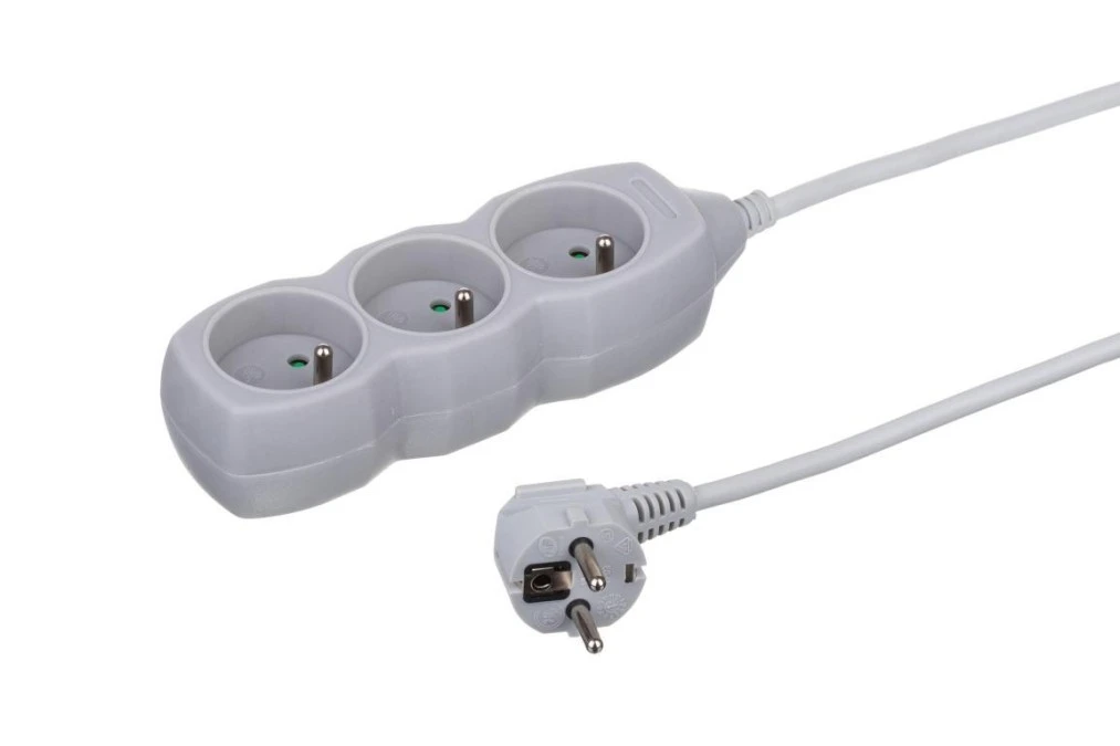 Przedłużacz 3-gniazdowy, 5m szary, 3x1,0mm OWY / 24250