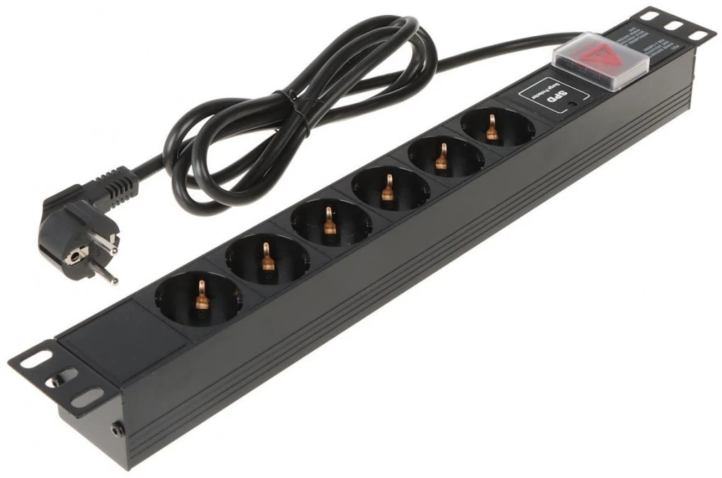 Listwa zasilająca rack 19", 7 gniazd, z wyłącznikiem i zabezpieczeniem