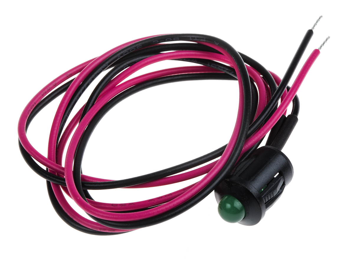 Lampka kontrolna do montażu panelowego 2V dc, zielona 8mm LED Czarny Wyprowadzenia RS PRO