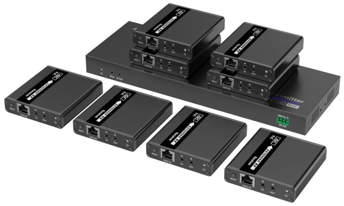 Extender HDMI 1x8 4K30Hz do 40m po skrętce Kat6 IR PoC