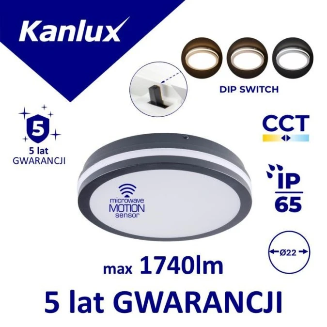 5. Plafoniera LED z czujnikiem BENO 12-18W CCT-L-SEG 1100-1770lm 3000-4000K ciepła/neutralna IP65 IIkl. 5 lat gwar. grafitowy 38788 103.39