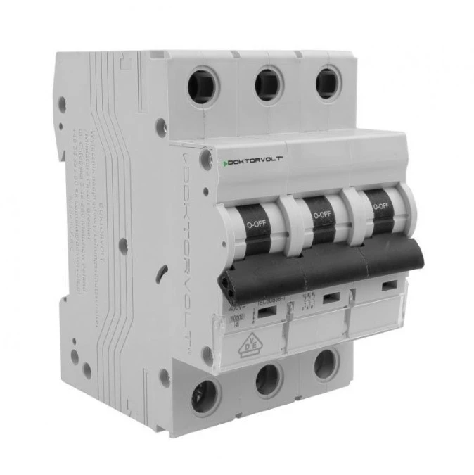 8. Wyłącznik nadprądowy S bezpiecznik 3-fazowy C16 (C 16A) 3-biegunowy 3P (400V AC) 3-modułowy 10kA VDE Doktorvolt 37.53