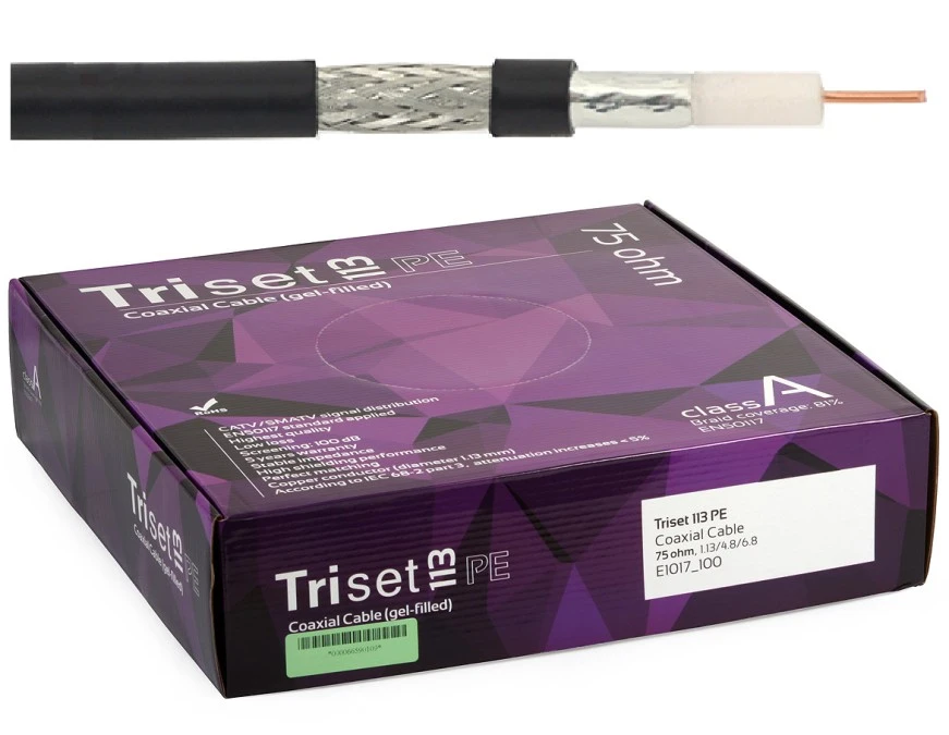 3. Przewód koncentryczny antenowy żelowany 75ohm TRISET-113 1,13/4,8/6,8 Cu ekran 80 Triset /100m/ 289.65