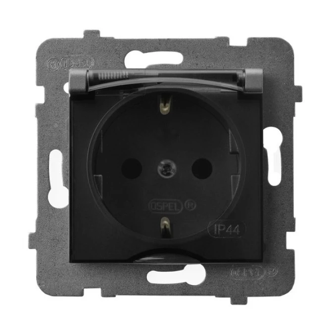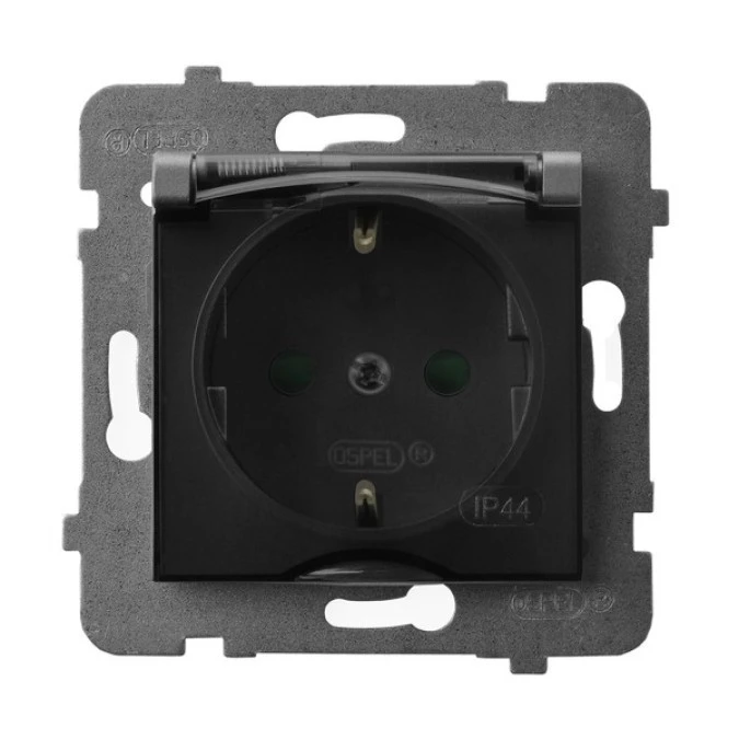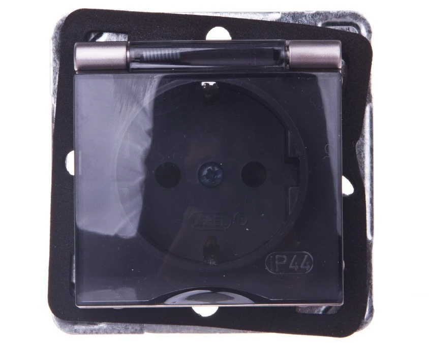 10. IMPRESJA Gniazdo bryzgoszczelne z/u Schuko IP44 klapka przezroczysta antracyt GPH-1YS/m/50/d 31.17