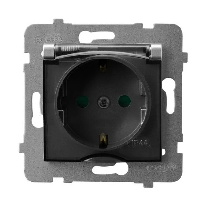 IMPRESJA Gniazdo hermetyczne z uziemieniem schuko IP-44 wieczko przezroczyste antracyt GPH-1YS/m/50/d OSPEL