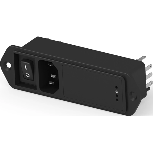 IEC inlet filter C14, 50 to 60 Hz, 10 A, 250 VAC, faston plug 6.3 mm, DF12.1250.7110.1