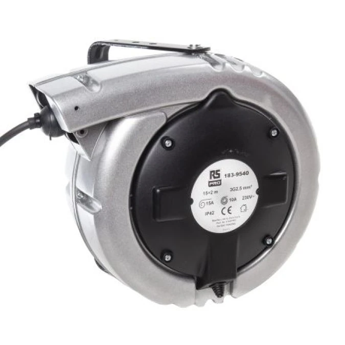 15m Przedłużacz bębnowy 15m 2,5 mm² 0 gniazda z automatycznym zwijaniem 15A 230 V Czarny PVC Szpula kablowa