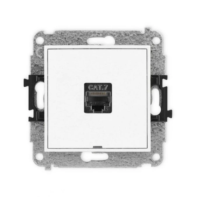 1. ICON Mechanizm gniazda komputerowego pojedynczego 1xRJ45, kat. 7, ekranowane, 8-stykowy, bez pola opisowego biały IGKBO-9 98.86