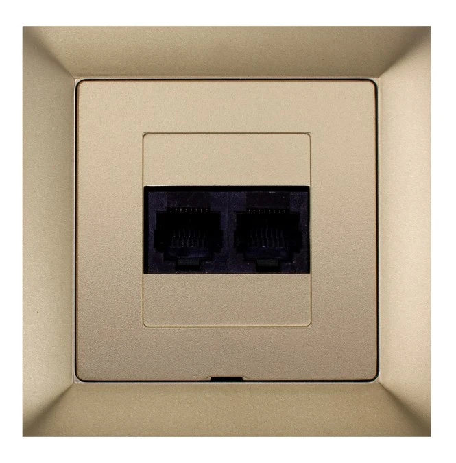 PREMIUM Gniazdo komputerowe podwójne 2xRJ45 kat.6 krone LSA+ piaskowy metalizowany GTP - 22 Pr/6