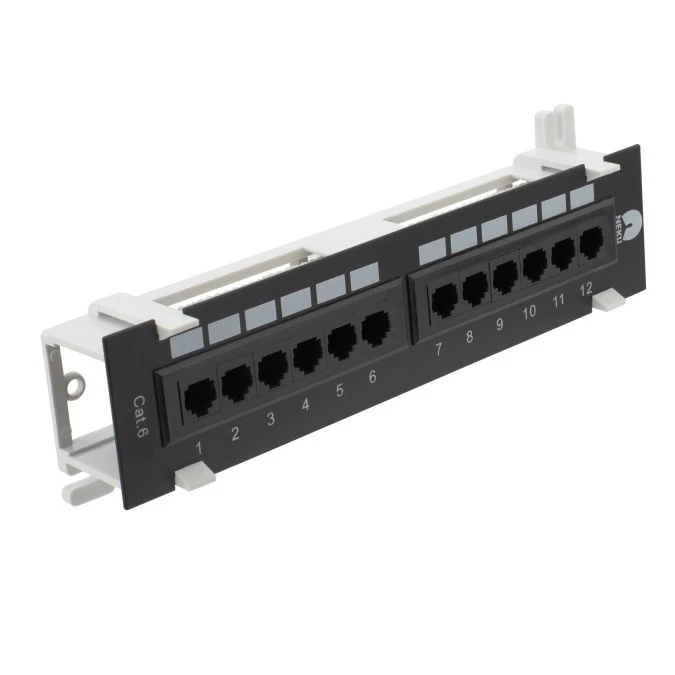 Patch panel naścienny 10 cali 1U kat.6 12p UTP czarny NEKU