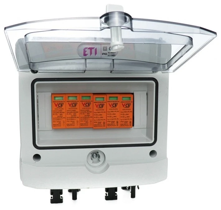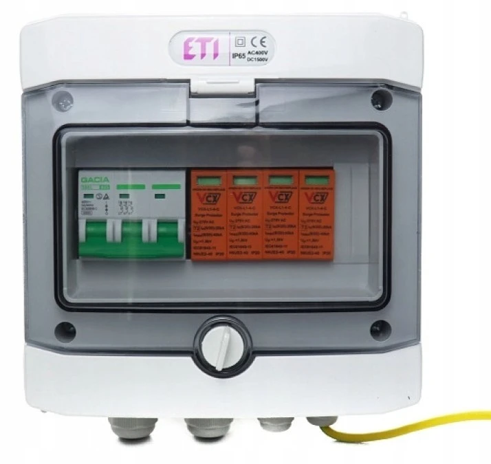 2. Rozdzielnica PV 1000V DC 1 string, wyposażona w ogranicznik przepięć ETI 1DC 508.70