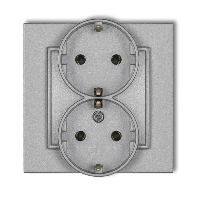 10. MINI Gniazdo podwójne z uziemieniem SCHUKO 2x(2P+Z) (bez przesłon torów prądowych) srebrny metalik 7MGP-2s 37.06