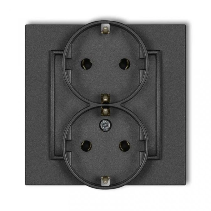 6. MINI Gniazdo podwójne z uziemieniem SCHUKO 2x(2P+Z) (bez przesłon torów prądowych) grafitowy mat 28MGP-2s 37.06