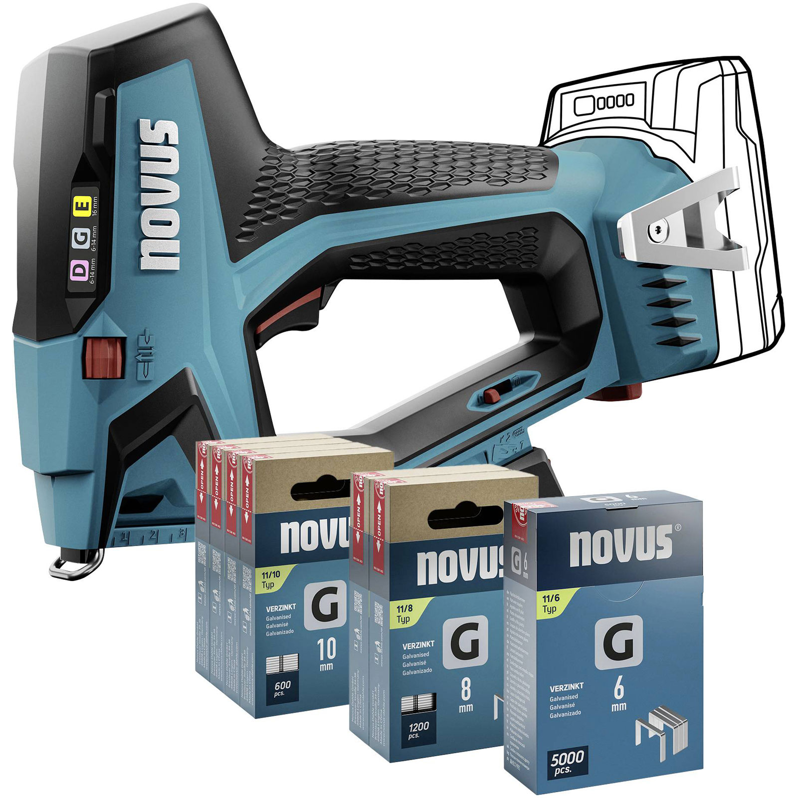 Novus 031-0374 J-551 Battery Stapler, 6-14mm Staples, 18V Li-Ion Battery