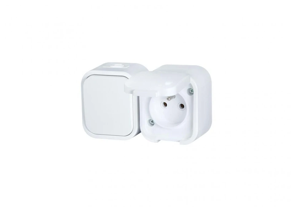 10. B2 Gniazdo pojedyncze n/t 2p+Z, bryzgoodp.+ Łącznik IP54 biały 00060278 18.68