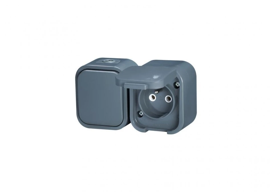 9. B2 Gniazdo pojedyncze n/t 2p+Z, bryzgoodp. + Łącznik IP54 szary 00060278 18.68