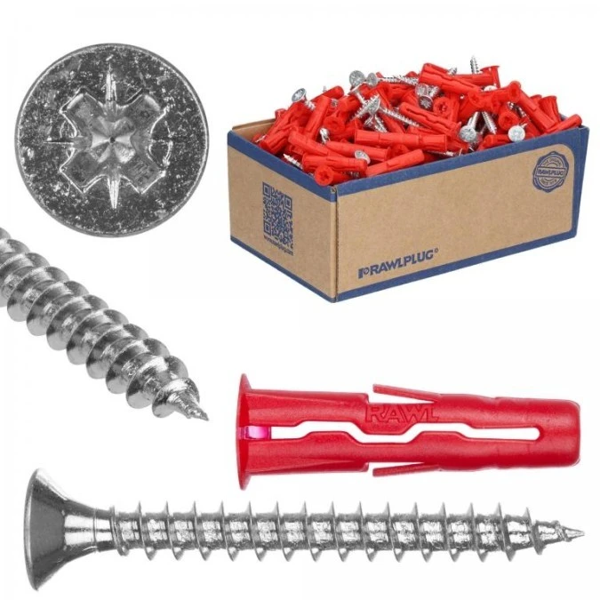 Kołki rozporowe uniwersalne UNO 8x32mm + wkręty PZ 4,5x40mm z łbem stożkowym do wszystkich typów podłoża RAWLPLUG 100szt