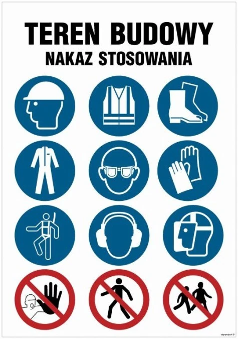ZNAK - OI010 Teren budowy, Nakaz stosowania - piktogramy 70 x 105 cm PN - Płyta 1mm