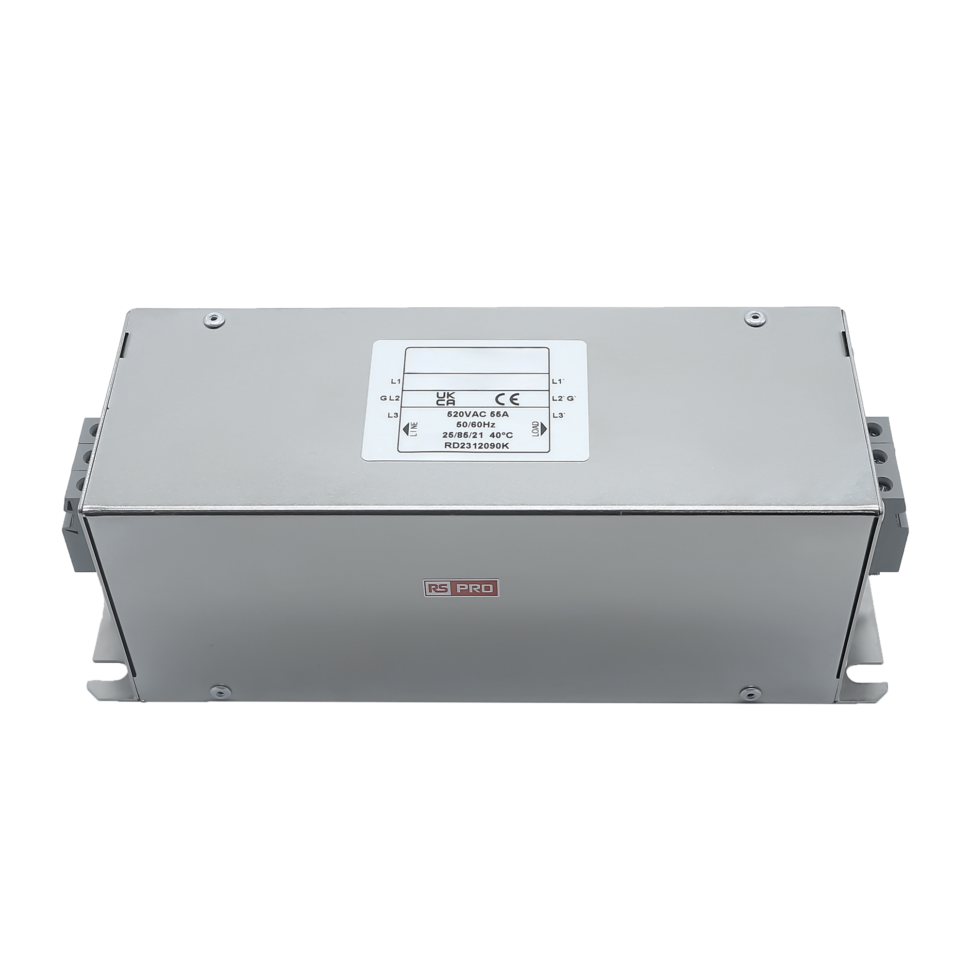 Filtr sieciowy 65A 3-fazowy 1MΩ*3 300/520 V AC 50/60Hz 4*0,3 mH RS PRO Montaż w obudowie