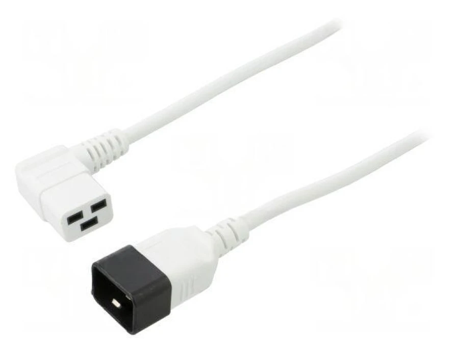 Kabel: 3x1,5mm2, IEC C19 żeński kątowy,IEC C20 męski, 3m LT-549R+550 H05VV-F 3X1.5 3M WHT