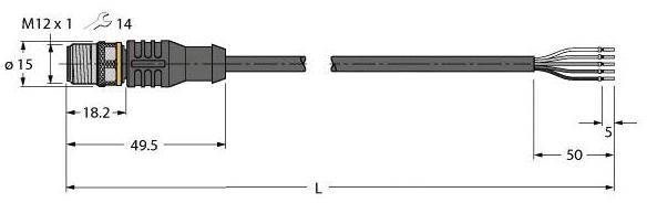 15. Turck 6627156 Złącze konfekcjonowane czujnika/aktuatora PKG4S-5-PSG4S/TXL, piny: 4, 5 m, 1 szt. 119.00