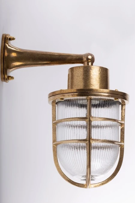 12. KINKIET mosiężny 72, E27, 150W, klosz przeźroczysty-szkło, IP64, siatka mosiężna A72 343.64