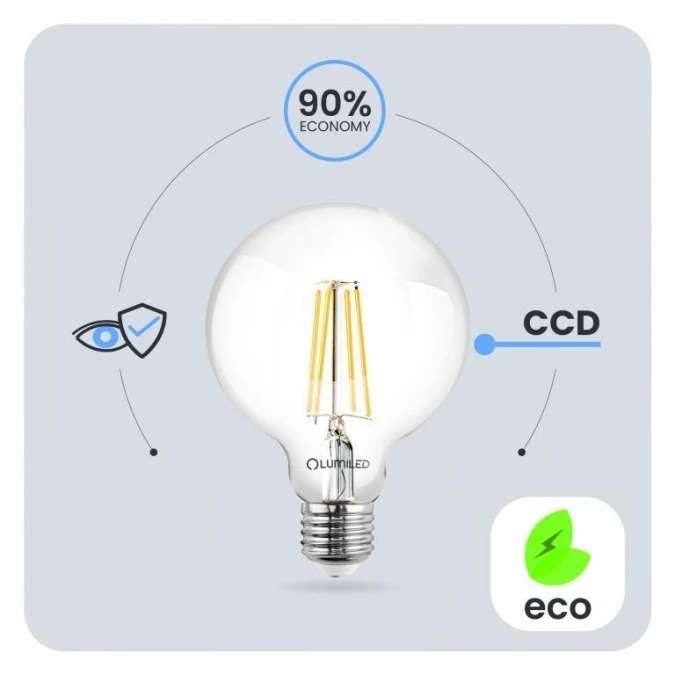 14. Żarówka Dekoracyjna Kulista LED E27 G125 7W = 60W 806lm 3000K Ciepła 360 Filament LUMILED globe 19.26