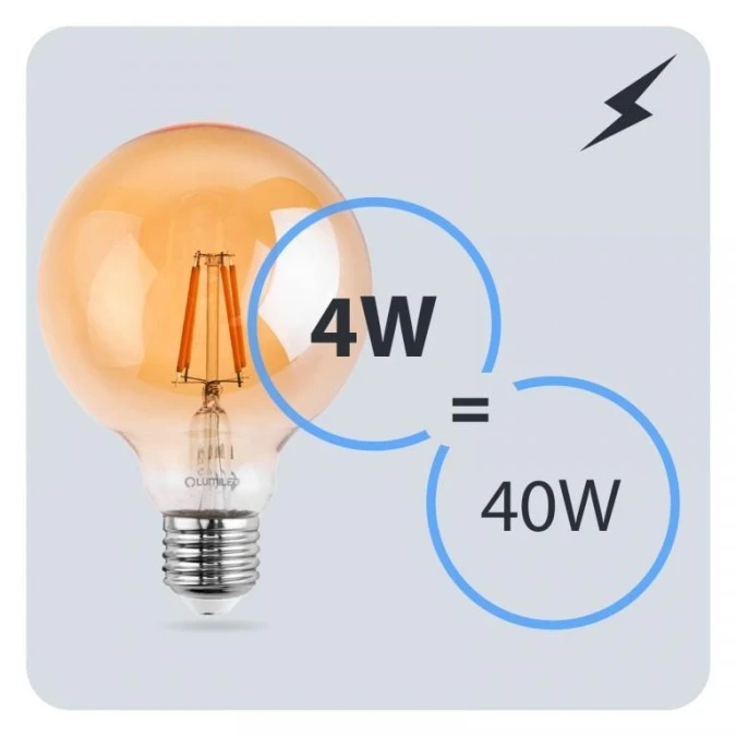 4. Żarówka Dekoracyjna Kulista LED E27 G125 4W = 40W 470lm 2000K Ciepła 360 Filament LUMILED Globe Amber 18.12