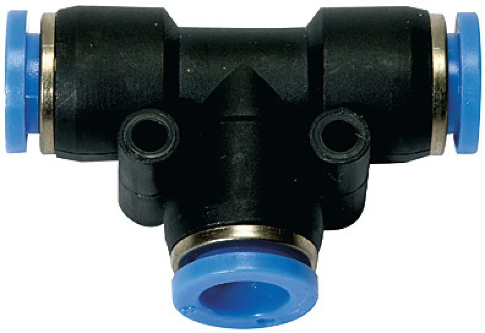 7. Trójnik pneumatyczny wtykowy typu T do węża fi 6 mm, tworzywo sztuczne 5.01