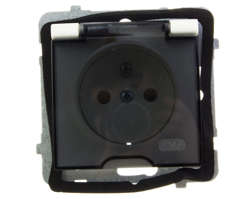 AS Gniazdo bryzgoszczelne z/u IP44 klapka przezroczysta ecru GPH-1GZ/m/27/d