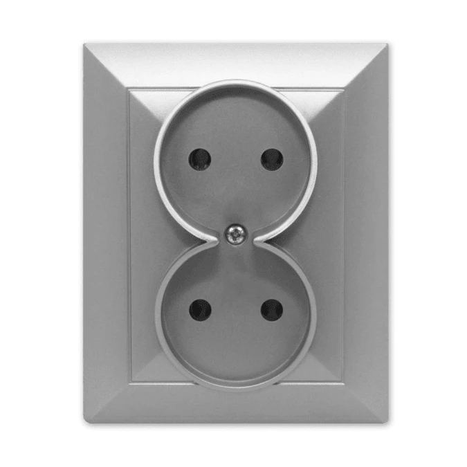 Topaz Gniazdo Podwójne Podtynkowe Z Uziemieniem Gpt-6T Srebrne