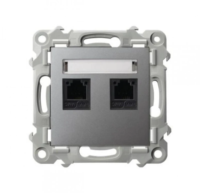 SZAFIR Gniazdo telefoniczne podwójne niezależne szary mat GPT-2ZN/m/70