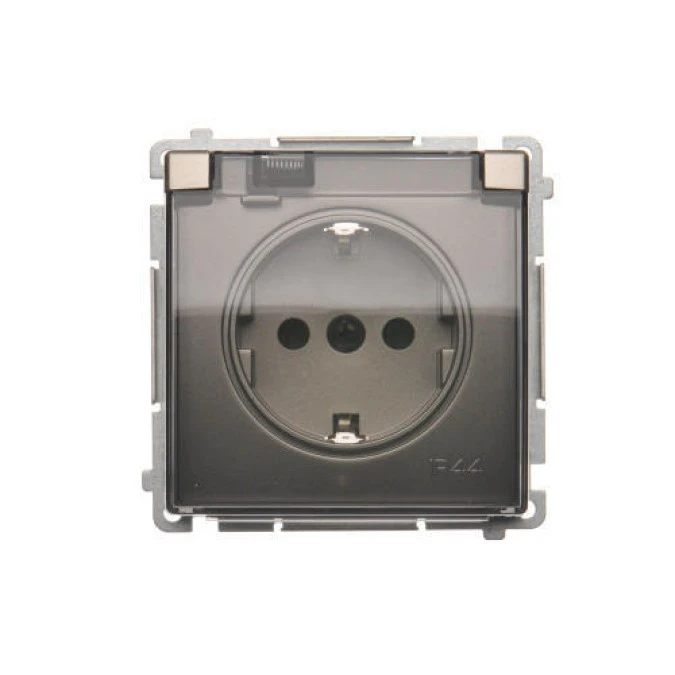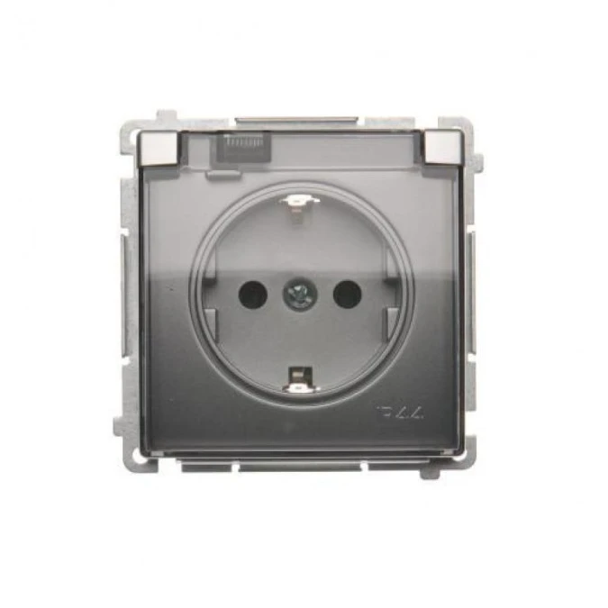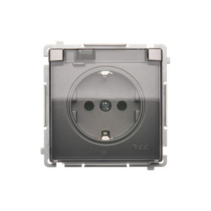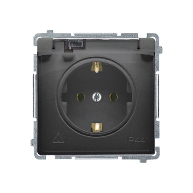 Simon Basic Gniazdo wtyczkowe Schuko IP44 (moduł) 16A, 250V, zaciski śrubowe czarny. Klapka transparentna BMGSZ1B.01/49A