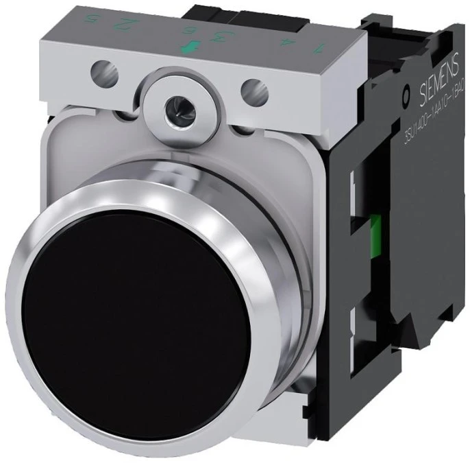 5. Przycisk metalowy 22mm błyszczący czarny 1Z z samopowrotem IP69k Sirius ACT 3SU1150-0AB10-1BA0 49.26