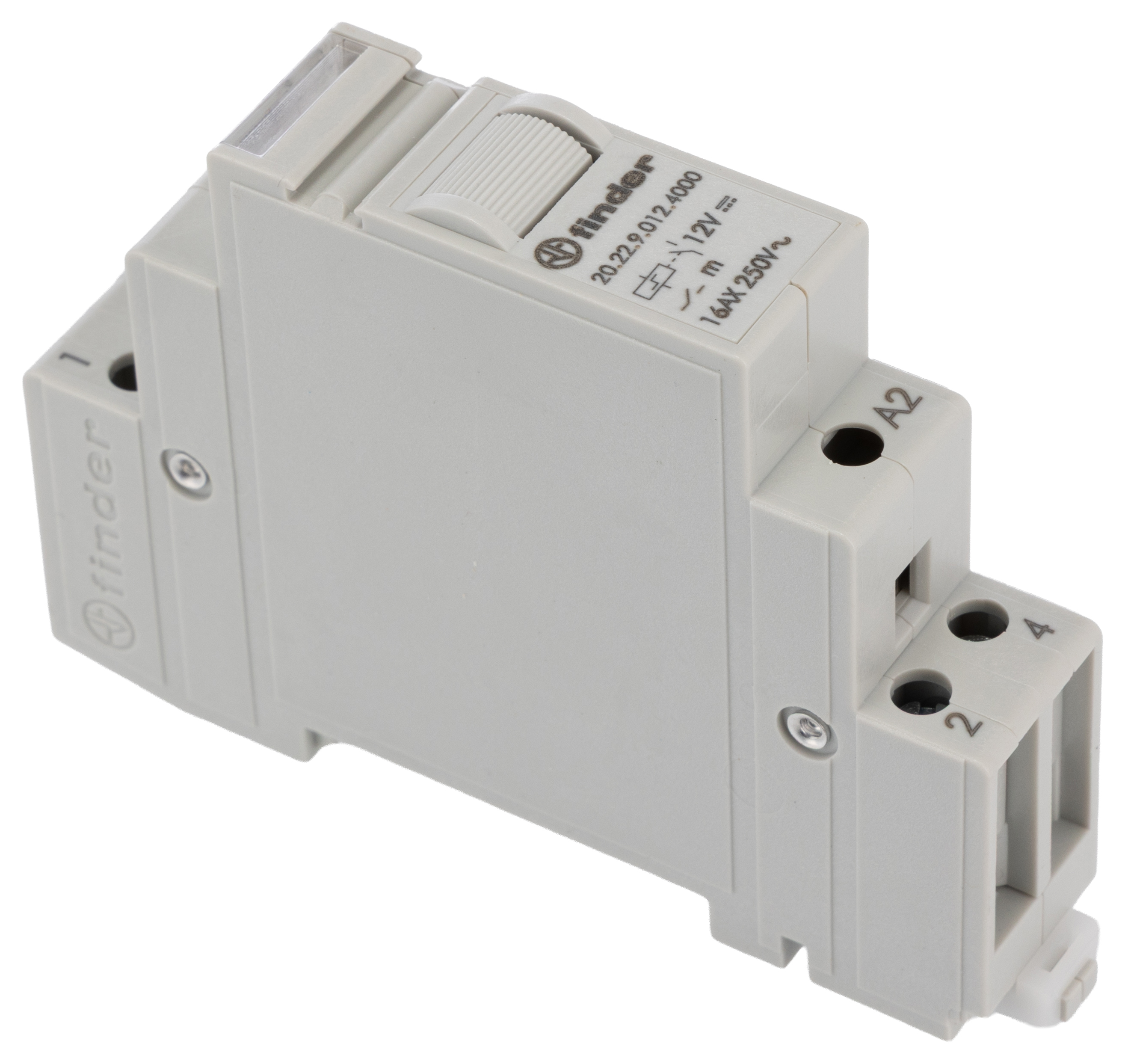 7. Modułowy przekaźnik krokowy 12V dc DPST Finder 6.5W, na szynę DIN Śruba 176.32
