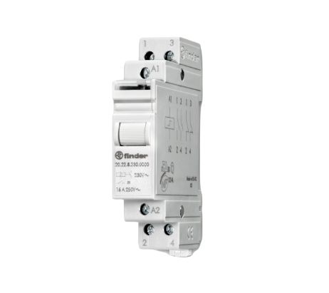 9. Modułowy przekaźnik krokowy 230V ac 1NO/1NC Finder 6.5VA, na szynę DIN Śruba 176.32