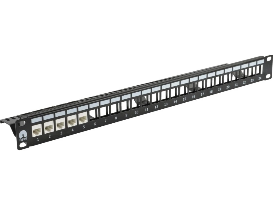Patch panel pusty RACK 19" 1U na 24 moduły keystone UTP czarny NEKU