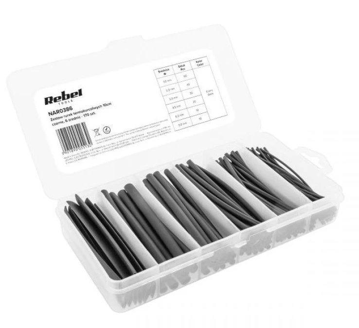 Zestaw rurek termokurczliwych 170szt. 10cm CZARNE 6 średnic