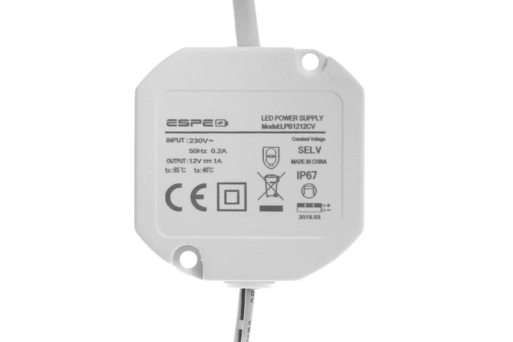 Zasilacz LED dopuszkowy 12V 1A 12W IP67 ESPE LPB1212CV