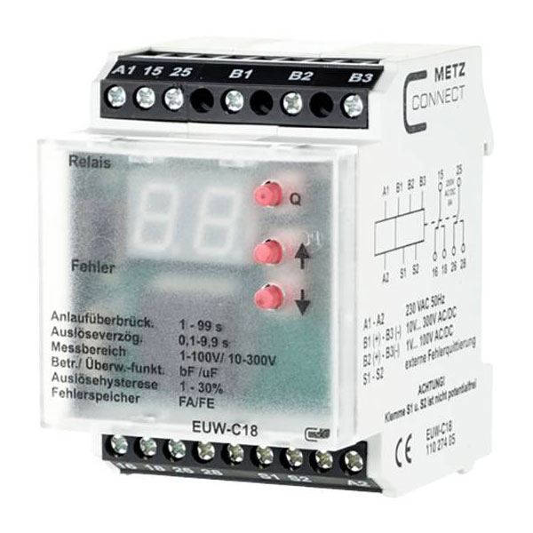 Metz Connect 11027405 Monitoring Relay 230V AC 2 Change-overs 7-Segment Display