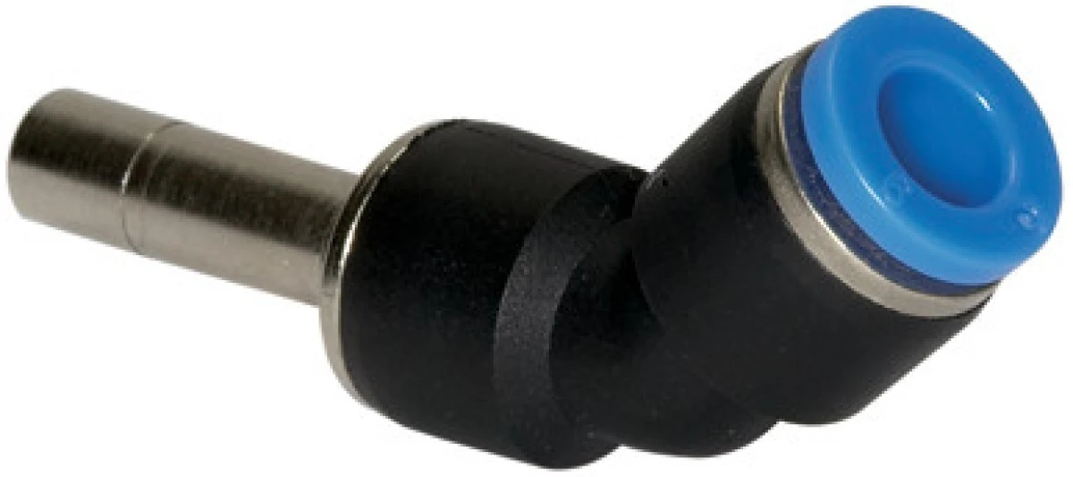 Redukcja kątowa 45 do złączy wtykowych pneumatycznych, wtyk 12 mm pod wąż fi 10 mm