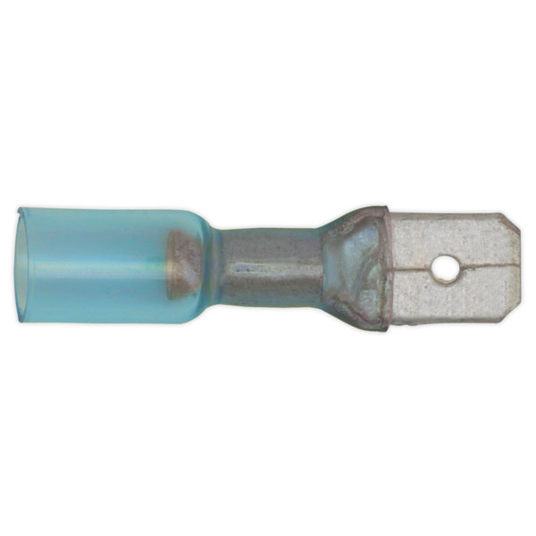 Sealey BTSPM25 Heat Shrink Push-On Terminal 6.3mm Male Blue Pack of 25