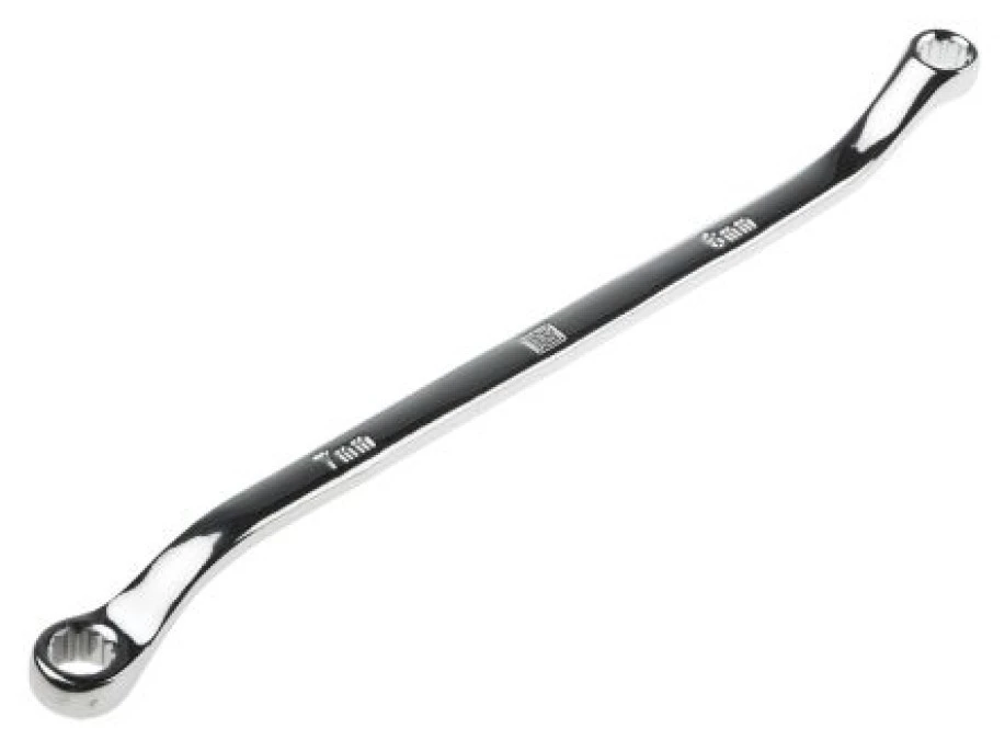 Klucz oczkowy odgięty, roz. 6 x 7 mm, dł. 165 mm, materiał: Stal chromowo-wanadowa, RS PRO