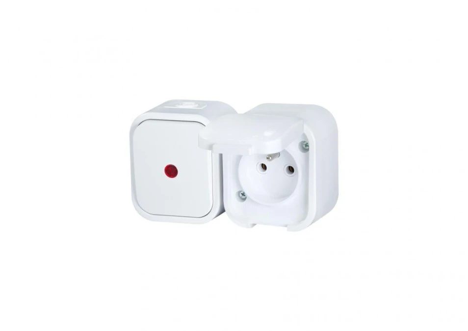 11. B2 Gniazdo pojedyncze n/t 2p+Z bryzgoodp. + Łącznik podświetlany IP54 biały 00060278 21.87