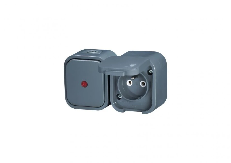 10. B2 Gniazdo pojedyncze n/t 2p+Z bryzgoodp. + Łącznik podświetlany IP54 szary 000060278 21.87