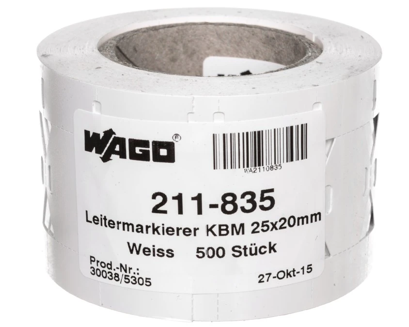 Oznaczniki na opaskę zaciskową kabla 25x20mm w taśmie 1-rzędowej 500 tabliczek w rolce 211-835