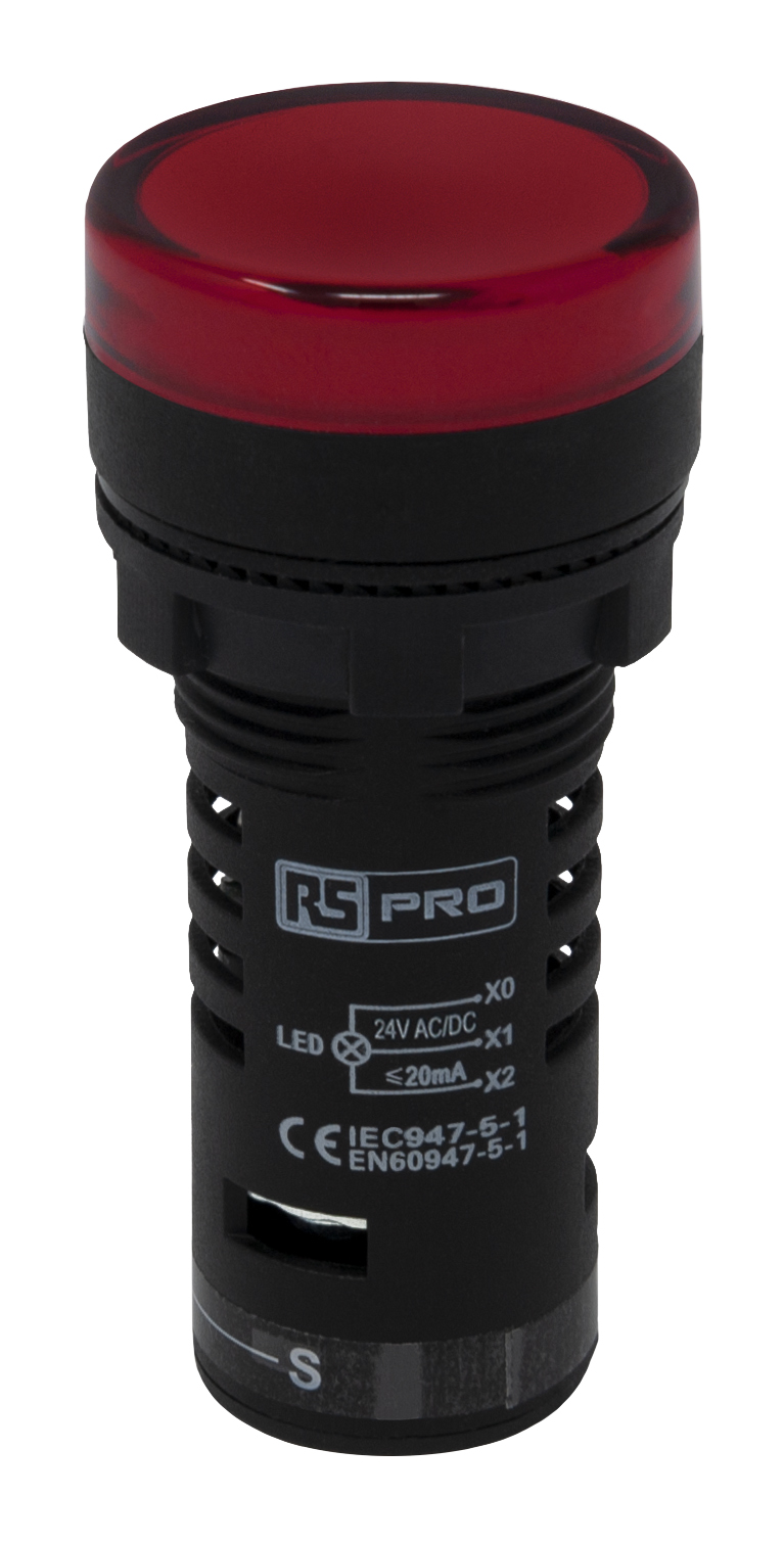 3. Kontrolka 24V ac/dc Czerwony RS PRO średnica wycięcia 22mm Montaż panelowy Śruba 48.68