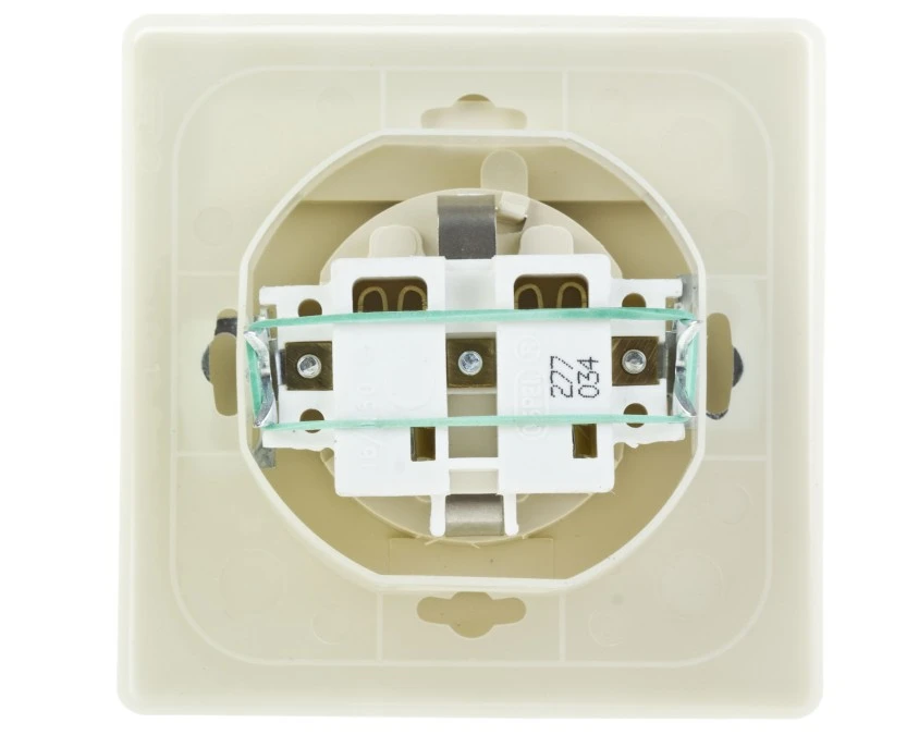 7. KIER Gniazdo pojedyncze z uziemieniem schuko z przesłonami beżowy klapka dymna GPH-1WSP/01/d OSPEL 24.43