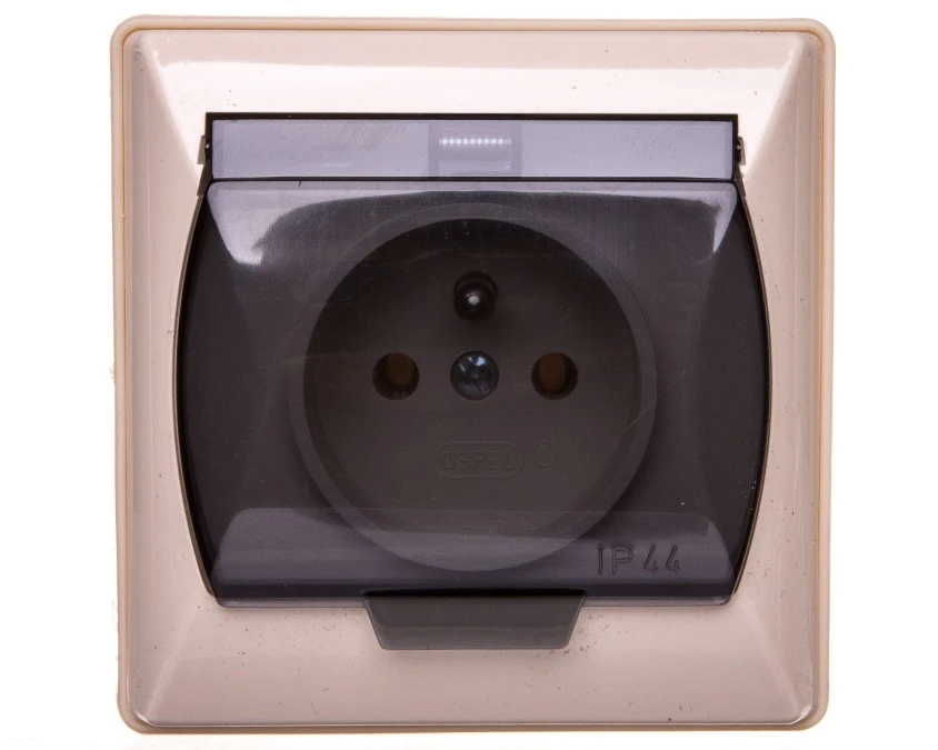 3. AKCENT Gniazdo hermetyczne z uziemieniem schuko IP-44 wieczko przezroczyste beżowy GPH-1AS/01/d OSPEL 22.56