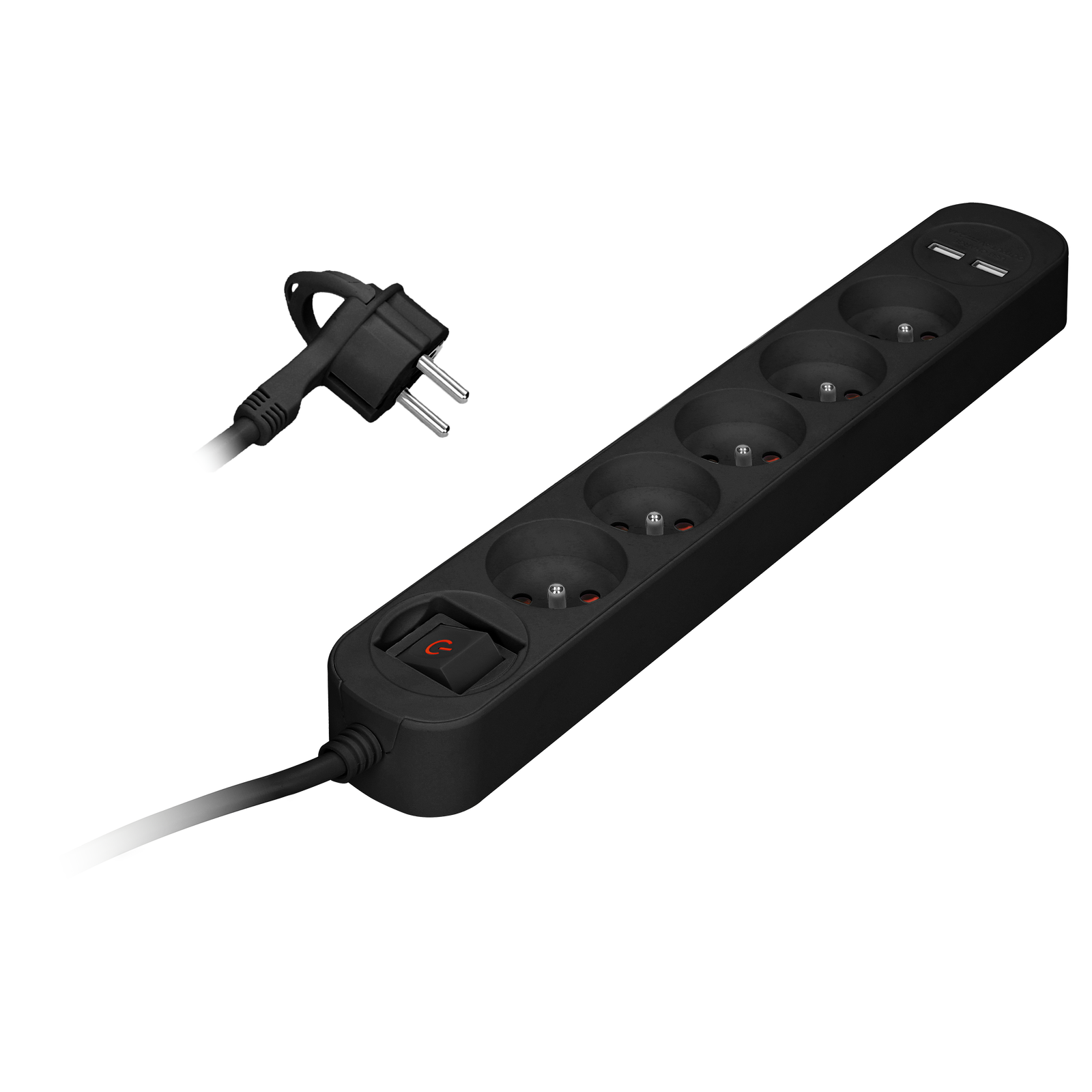 Filtr komp PS-1 1,5m czarny 2USB Listwa przepięć z wyłącznikiem